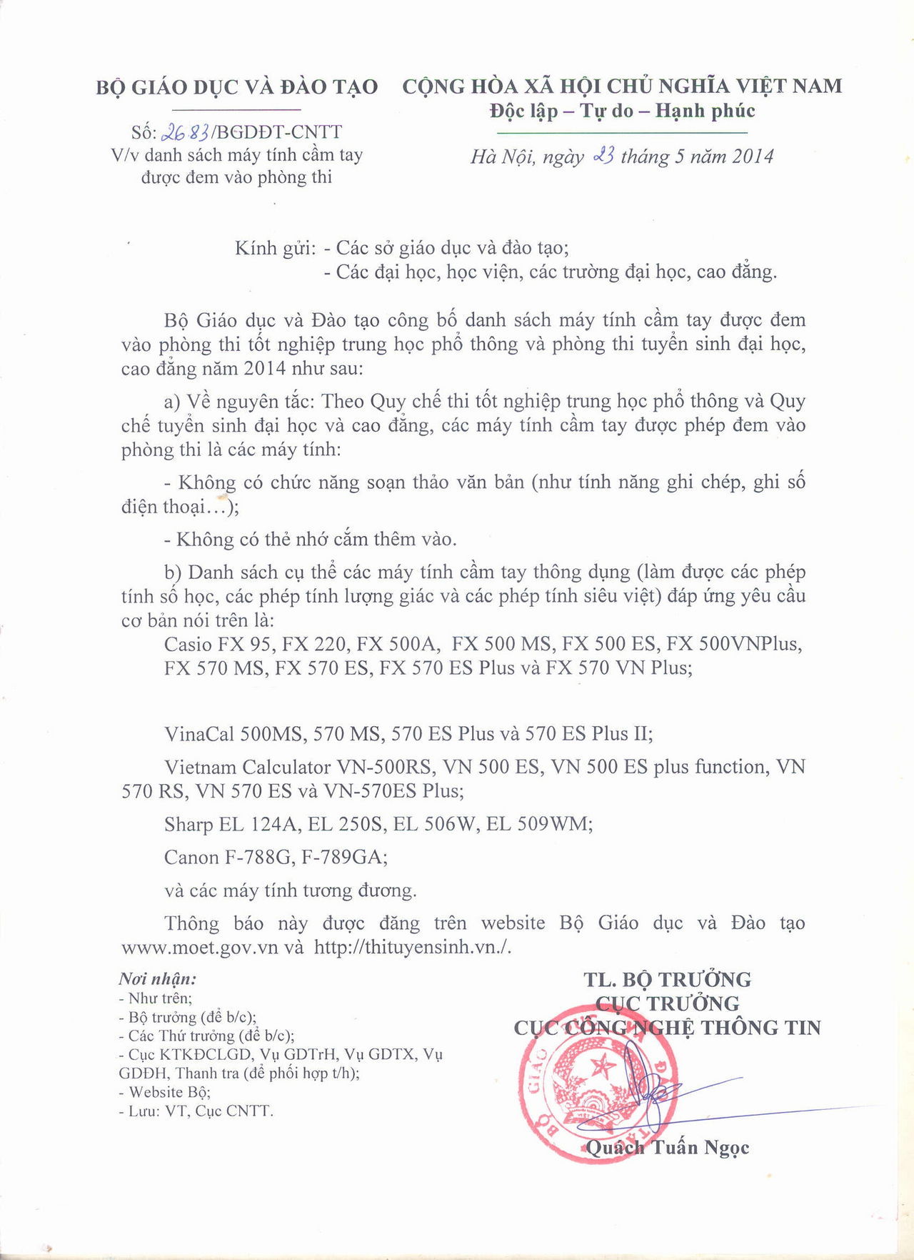 Hướng dẫn danh sách máy tính bỏ túi được đem vào pḥng thi kỳ thi THPT quốc gia năm 2019