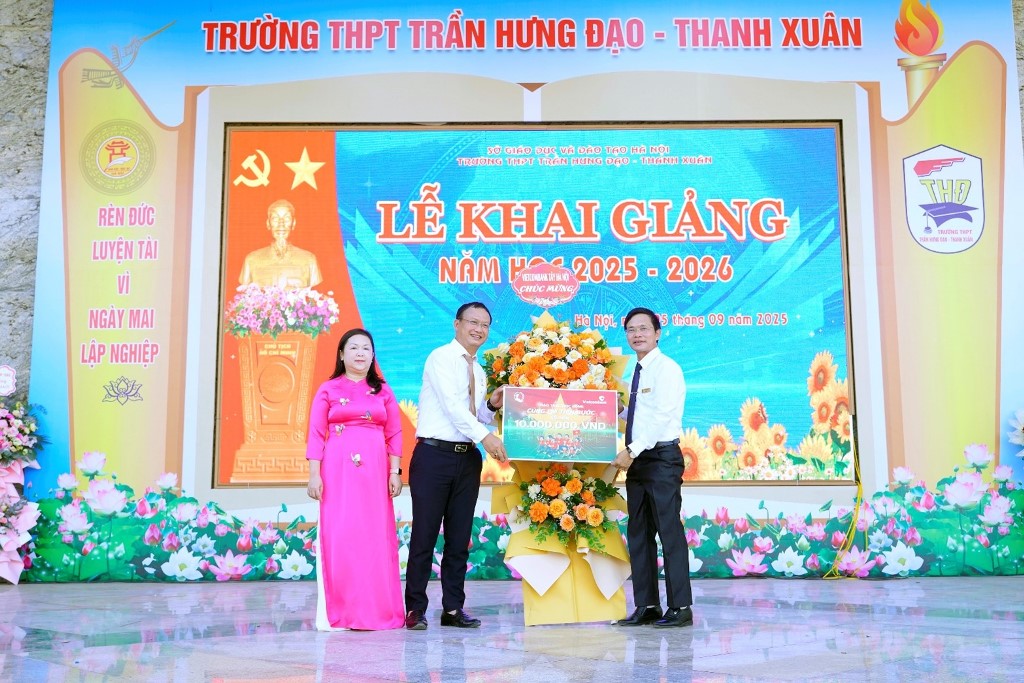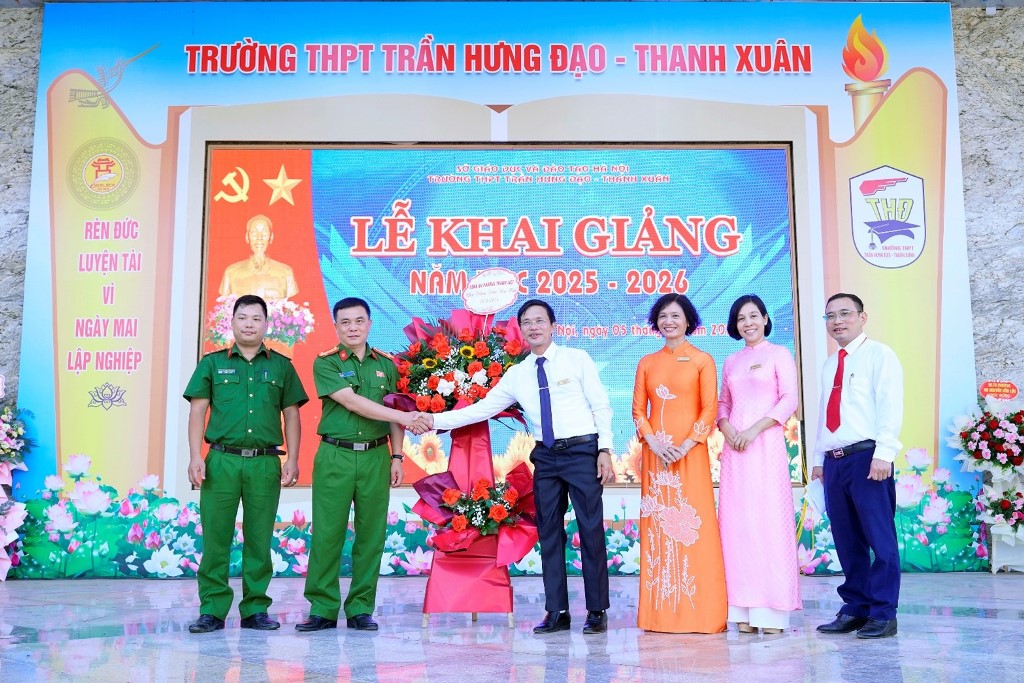 TRƯỜNG THPT TRẦN HƯNG ĐẠO – THANH XUÂN Sáng ngày 5/9/2025, trong không khí tưng bừng, phấn khởi của cả nước chào đón Ngày hội toàn dân đưa trẻ đến trường, thầy và trò Trường THPT Trần Hưng Đạo - Thanh Xuân long trọng tổ chức Lễ khai giảng năm học mới 2025 – 2026. Buổi lễ diễn ra trong không khí trang nghiêm, rộn ràng cờ hoa, với sự hiện diện của đại diện lãnh đạo Công an phường Thanh Liệt, Ban Đại diện Cha mẹ học sinh, cùng toàn thể cán bộ, giáo viên, nhân viên và học sinh nhà trường. Lễ khai giảng năm nay mang nhiều ý nghĩa khi diễn ra đồng thời với sự kiện trọng đại: Kỷ niệm 80 năm ngày thành lập Bộ Quốc gia Giáo dục (1945 – 2025), tiền thân của Bộ Giáo dục và Đào tạo ngày nay. Đây là dấu mốc lịch sử quan trọng, khẳng định truyền thống hiếu học và sự quan tâm của Đảng, Nhà nước đối với sự nghiệp trồng người;