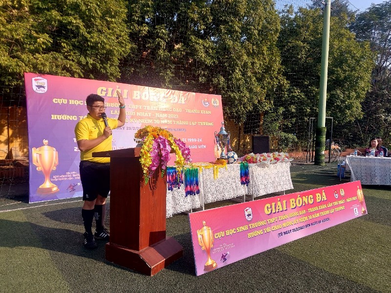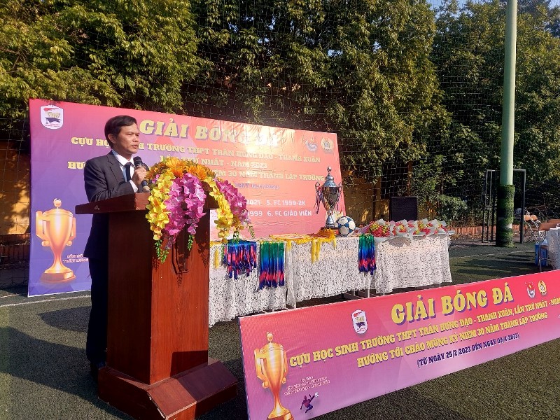 KHAI MẠC GIẢI BÓNG ĐÁ NAM CỰU HỌC SINH Đến dự và phát biểu khai mạc giải đấu, nhà giáo Vũ Đình Hà - Bí thư Chi bộ, Hiệu trưởng nhà trường cho biết: Giải bóng đá cựu học sinh trường THPT Trần Hưng Đạo - Thanh Xuân lần thứ nhất được tổ chức nhằm tăng cường các hoạt động giao lưu, kết nối giữa các thế hệ giáo viên, học sinh đã và đang làm việc, học tập dưới mái trường THPT Trần Hưng Đạo - Thanh Xuân, hướng tới Lễ kỷ niệm 30 năm thành lập trường. Đây cũng là sân chơi lành mạnh, bổ ích nhằm phát triển phong trào thể thao cũng như các hoạt động khác trong cán bộ, giáo viên và học sinh, các thế hệ của nhà trường. Từ đó, góp phần quảng bá hình ảnh về một ngôi trường thân thiện, nhân văn, đang trên đà phát triển đến với đông đảo tầng lớp nhân dân Thủ đô.