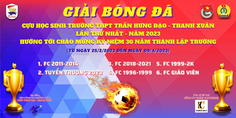 Giải bóng đá cựu học sinh trường THPT Trần Hưng Đạo - Thanh Xuân lần thứ nhất năm 2023 diễn ra từ ngày 25/2/2023 đến ngày 09/4/2023 quy tụ 6 đội bóng (05 đội là học sinh và cựu học sinh, 01 đội bóng là giáo viên nhà trường). Các đội thi đấu vòng tròn một lượt tính điểm để chọn ra các đội có thành tích xuất sắc nhất vào thi đấu bán kết, chung kết và chọn ra nhà vô địch. Với chất lượng cầu thủ đồng đều, được tổ chức tốt, 19 trận đấu diễn ra trên sân bóng đá trường THPT Trần Hưng Đạo - Thanh Xuân hứa hẹn sẽ là những trận cầu mãn nhãn, giàu cảm xúc mà thầy và trò nhà trường gửi tới tất cả quý vị vào thứ Bảy và Chủ nhật hàng tuần.
