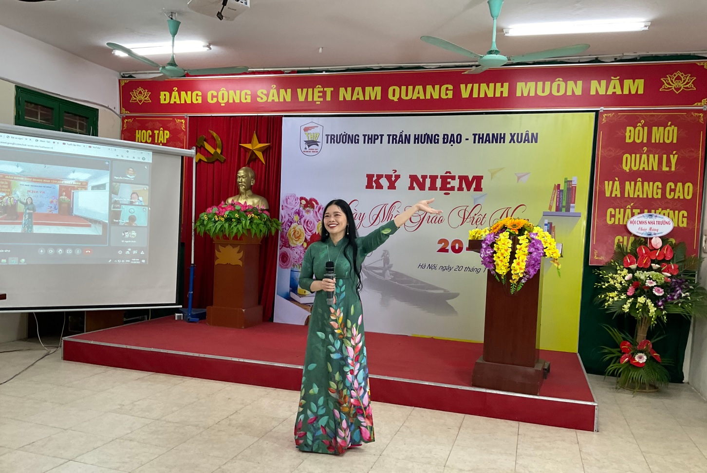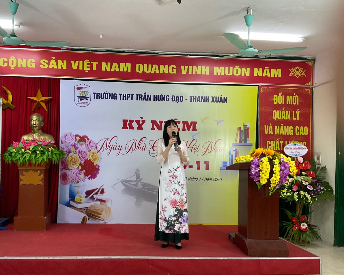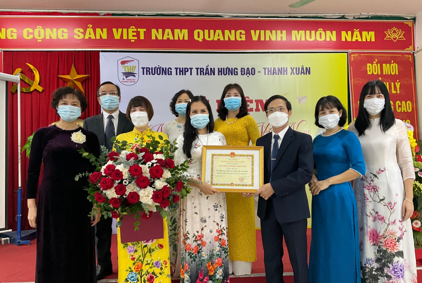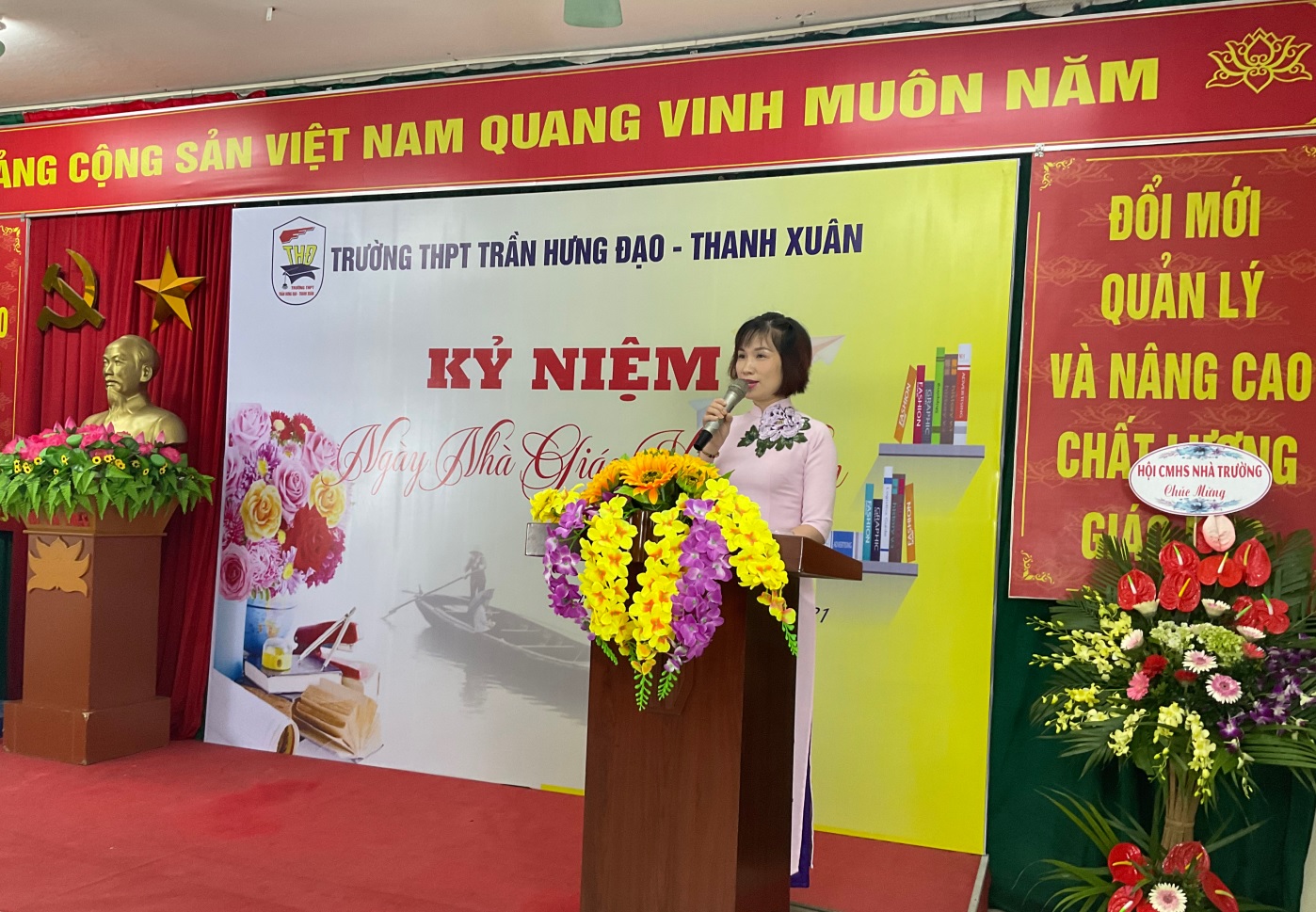 TRƯỜNG THPT TRẦN HƯNG ĐẠO - THANH XUÂN Trong không khí vui tươi, ấm áp, thầy và trò trường THPT Trần Hưng Đạo – Thanh Xuân đã trang trọng tổ chức Lễ kỉ niệm 39 năm ngày Nhà giáo Việt Nam (20/11/1982 - 20/11/2021) Để đảm bảo an toàn phòng chống dịch và tạo sức lan tỏa, buổi lễ được tổ chức dưới hình thức kết hợp cả trực tuyến và trực tiếp. Từ phòng họp nhà trường, chương trình được kết nối đến các cán bộ, giáo viên, nhân viên, toàn thể học sinh và cha mẹ học sinh nhà trường. Mở đầu chương trình, nhà giáo Vũ Đình Hà – Bí thư Chi bộ – Hiệu trưởng nhà trường ôn lại truyền thống tôn sự trọng đạo của các thế hệ học sinh nhà trường, tôn vinh các thế hệ giáo viên đã chung sức, đồng lòng xây dựng và phát triển nhà trường ngày càng lớn mạnh như ngày nay. Trong diễn văn tại buổi lễ, thầy giáo Vũ Đình Hà nhấn mạnh: Năm học vừa qua, trước diễn biến phức tạp của đại dịch Covid- 19, tập thể cán bộ, giáo viên, nhân viên cùng học sinh nhà trường đã cố gắng vươn lên, chủ động, sáng tạo thực hiện thành công “mục tiêu kép” vừa phòng chống dịch vừa tổ chức dạy tốt, học tốt. Thầy và trò nhà trường gửi lời cảm ơn sâu sắc đến các cơ quan, đơn vị, tổ chức, cá nhân, các bậc Cha mẹ học sinh đã quan tâm giúp đỡ tạo điều kiện cho nhà trường hoàn thành tốt nhiệm vụ năm học 2020-2021.