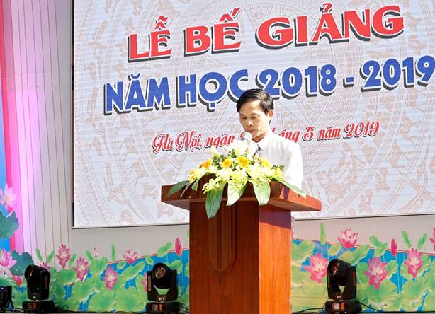 Sáng 25/5/2019, trường THPT Trần Hưng Đạo – Thanh Xuân đã long trọng tổ chức Lễ bế giảng năm học 2018 – 2019 và Lễ ra trường cho học sinh lớp 12, niên khóa 2016-2019. Trong buổi lễ hôm nay, những chùm phượng vĩ rưng rưng thắp lửa nơi góc sân trường, bằng lăng tím nôn nao gọi những yêu thương, lưu luyến, nhớ nhung…của tuổi học trò. Tất cả chợt nhận ra, trong hoa lá cỏ cây, trong những vòng tay siết chặt của bạn bè, mùa hạ - mùa thi - mùa chia li - đang sát gần với học sinh Trần Hưng Đạo -Thanh Xuân. Mở đầu buổi lễ, Nhà giáo Vũ Đình Hà – Bí thư Chi bộ - Hiệu trưởng Nhà trường đã đọc Báo cáo tổng kết năm học 2018 – 2019. Cùng nhìn lại các thành tích của thầy và trò nhà trường đã đạt được trong năm học vừa qua, Nhà giáo Vũ Đình Hà khẳng định: “Đây là một năm học thành công thể hiện những cố gắng, nỗ lực vượt bậc của của thầy và trò trường THPT Trần Hưng Đạo – Thanh Xuân”.