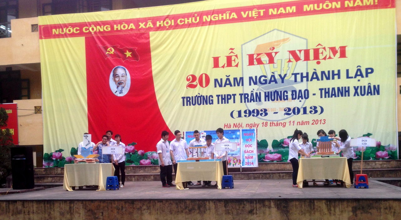 NGÀY HỘI ĐỌC SÁCH NĂM 2014 Theo Quyết định số 284/QĐ-TTg ngày 24/2/2014 của Thủ tướng Chính phủ, ngày 21/4 hàng năm sẽ là “Ngày Sách Việt Nam” và được tổ chức hàng năm nhằm xây dựng và phát triển phong trào đọc sách, hướng tới một xã hội học tập, một nét đẹp trong đời sống xã hội cũng như tôn vinh giá trị của sách, khẳng định vai trò, vị trí, tầm quan trọng của sách trong đời sống xã hội.Hưởng ứng “Ngày Sách Việt Nam” năm 2014, Bộ Giáo dục và Đào tạo, Sở giáo dục và Đào tạo Hà Nội đã triển khai kế hoạch tổ chức ngày Sách Việt Nam trong hệ thống trường học trên toàn quốc, tập trung vào các nội dung: Tổ chức “Ngày hội đọc sách” theo từng chủ đề tại các trường học...Hòa chung không khí “Ngày hội đọc sách” của các trường học trên toàn thành phố, ngày 14/4/2014, “Ngày hội đọc sách” của trường THPT Trần Hưng Đạo – Thanh Xuân được tổ chức với chủ đề “Đọc sách cho ngày mai” với mong muốn đưa phong trào đọc sách trở thành thói quen, nét đẹp văn hóa của các thầy cô giáo và học sinh toàn trường.Để “Ngày hội đọc sách” có nhiều ý nghĩa tạo ra sân chơi lành mạnh, bổ ích và là môi trường thân thiện, đoàn kết giữa các khối lớp học sinh trong trường, Thư viện nhà trường đã tổ chức cuộc thi gồm 3 phần: Xếp sách; Hoá trang thành nhân vật; Giới thiệu sách với sự tham dự của 3 đội của khối học sáng (12A, 12D, 11A) và 3 đội của khối học chiều (11D, 10A, 10D). Các đội tham gia rất hào hứng và có sự chuẩn bị kỹ lưỡng với những ý tưởng độc đáo trong phần thi xếp sách, đặc biệt phần hoá trang thành nhân vật Chí Phèo đã mang lại những tiếng cười giòn giã. Kết quả của cuộc thi: Khối sáng: - Nhất: Đội 12D - Nhì: Đội 12A - Ba: Đội 11A Khối chiều: - Nhất: Đội 11D - Nhì: Đội 10A và Đội 10D. Chúc mừng tất cả các đội đã tham gia. Những hình ảnh " Ngày hội đọc sách"
