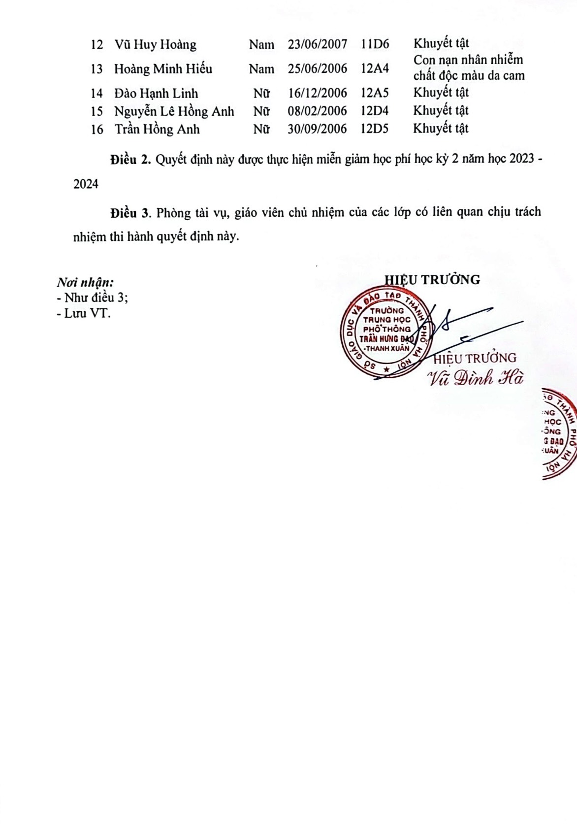 QUYẾT ĐỊNH: Về việc công khai quyết toán ngân sách năm 2023 của Trường THPT Trần Hưng Đạo - Thanh Xuân