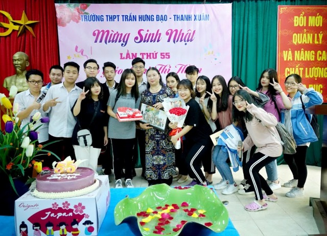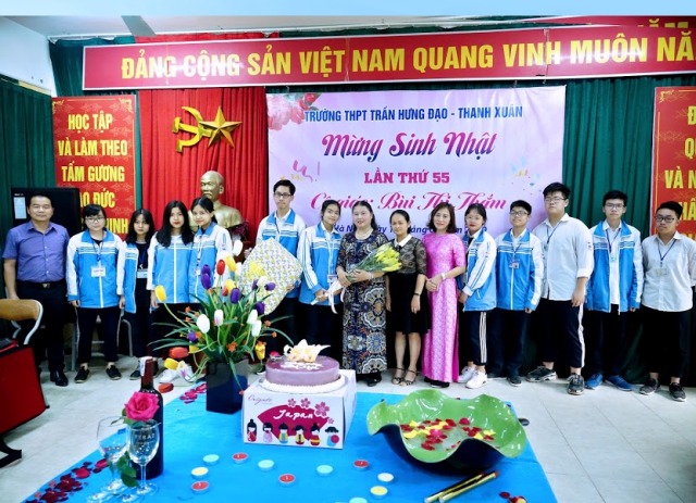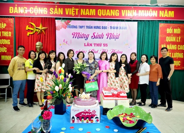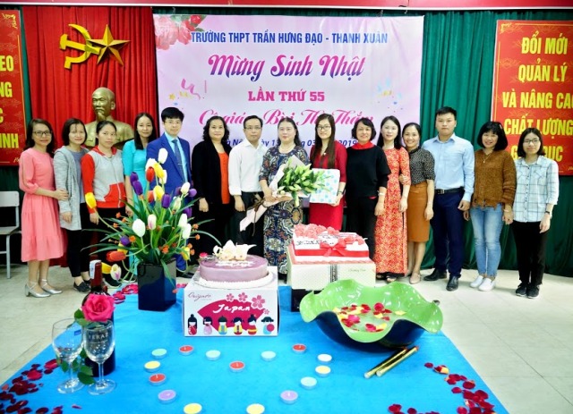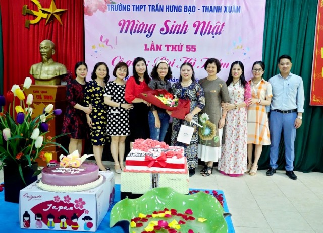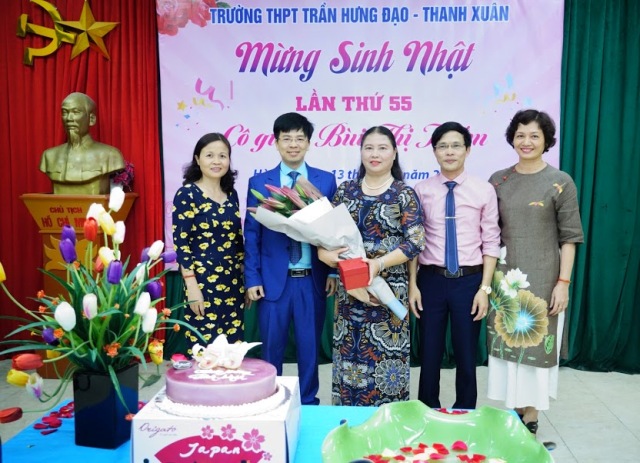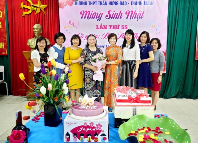 CÔ GIÁO BÙI THỊ THẮM Trở thành nét đẹp truyền thống của mái nhà THPT Trần Hưng Đạo – Thanh Xuân, chiều ngày 13/3/2019, toàn thể Hội đồng sư phạm nhà trường cùng hòa nhịp con tim, gửi trọn yêu thương tới cô giáo Bùi Thị Thắm – giáo viên bộ môn Toán trong chương trình mừng sinh nhật lần thứ 55 đầy cảm xúc Trong suốt thời gian 30 năm 6 tháng gắn bó với công tác dạy học, cô giáo Bùi Thị Thắm đã sống và làm việc ở 3 trường THPT khác nhau: THPT Phù Cừ (Hải Hưng), trường THPT Nguyễn Văn Cừ và THPT Trần Hưng Đạo, Thanh Xuân. Cho dù ở đâu, cô Thắm cũng luôn nhiệt tình, chan hòa, cởi mở với đồng nghiệp, hết lòng vì học sinh thân yêu, trách nhiệm trong công tác giảng dạy, hoàn thành tốt mọi nhiệm vụ được giao, được đồng nghiệp và học sinh quý mến.