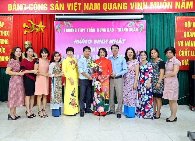 Trong không khí đầm ấm, cởi mở, thắm tình đồng nghiệp, chiều ngày 31/10/2018, Hội đồng sư phạm trường THPT Trần Hưng Đạo – Thanh Xuân trang trọng tổ chức chương trình mừng sinh nhật lần thứ 55 cho nhà giáo Nguyễn Thị Yến –Tổ trưởng công đoàn tổ Toán-Tin, giáo viên dạy Toán của Nhà trường.