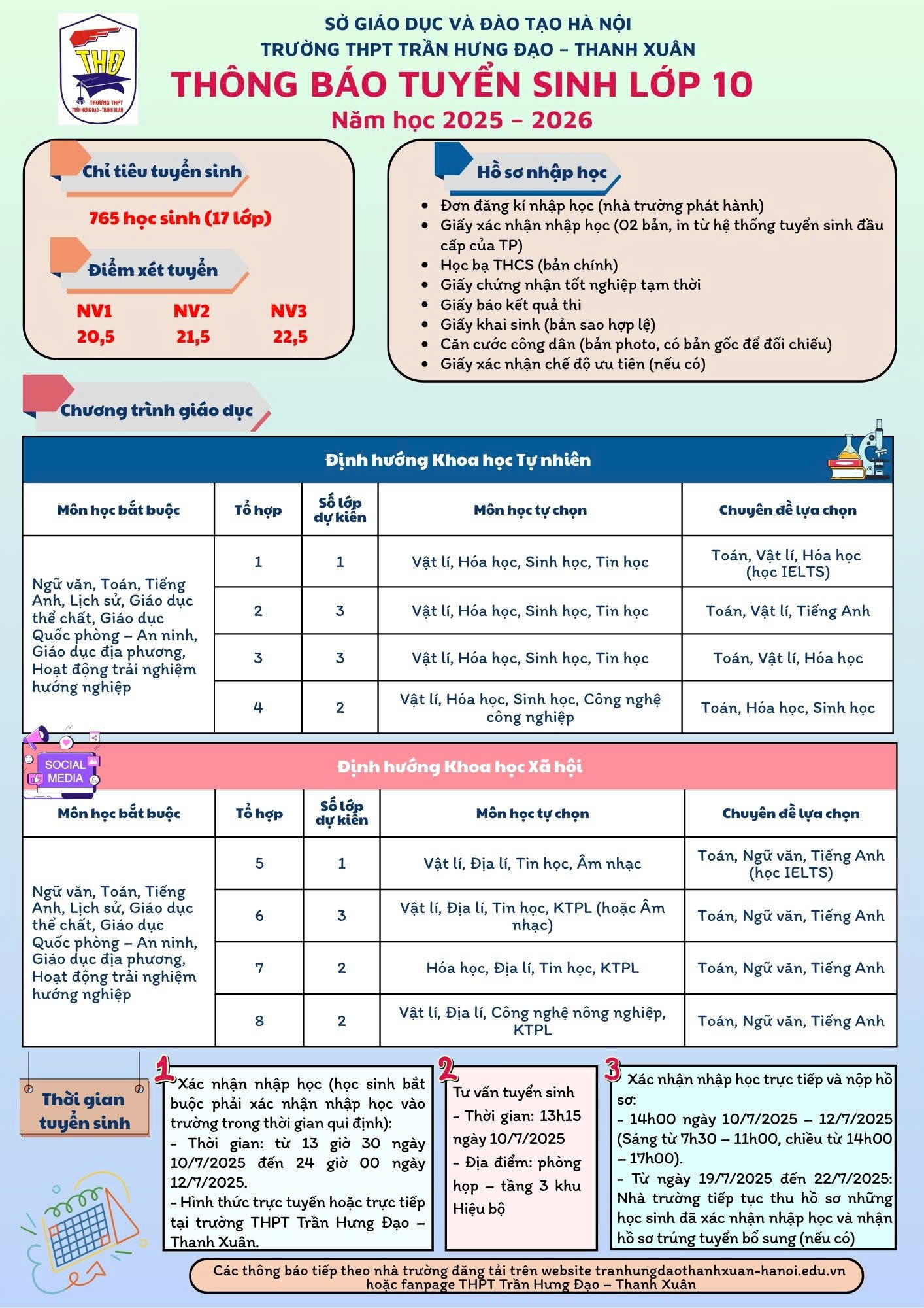 HƯỚNG DẪN NHẬP HỌC VÀO LỚP 10 TRƯỜNG THPT TRẦN HƯNG ĐẠO - THANH XUÂN NĂM HỌC 2025 - 2026